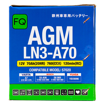 Аккумуляторы FQ серии DIN AGM (Absorbed Glass Mat) - современное и долговечное решение. За счёт современных технологий и методов производства, аккумуляторы AGM выделяются своей долговечностью и надёжностью. Использование специальных защитных клапанов на корпусе и стекломатериалов взаимодействующих с электролитом внутри аккумулятора предотвращает возможные утечки в самых экстримальных условиях. Не упустите возможность лично удостовериться во всех преимуществах серии DIN AGM.