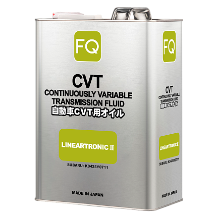 Высокоэффективная трансмиссионная жидкость. Трансмиссионная жидкость FQ CVT LINEARTRONIC II совместима с трансмиссионной жидкостью SUBARU CVT LINEARTRONIC II и может применяться в автомобилях, для которых рекомендовано использование трансмиссионной жидкости CVT LINEARTRONIC II.