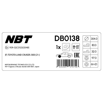 Тормозной диск NBT DB0138 / 09E77811 / A6F2181 / GR22966