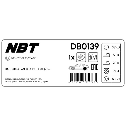 Тормозной диск NBT DB0139 / 09E77911 / A6R2183 / GR9-22967