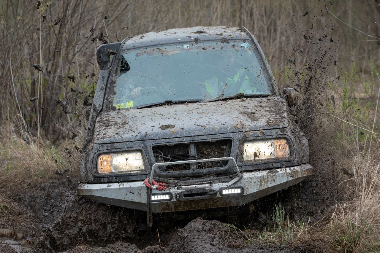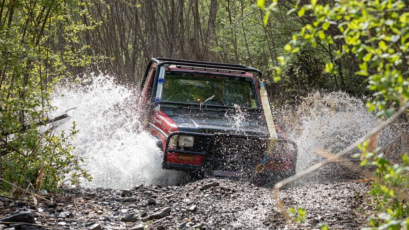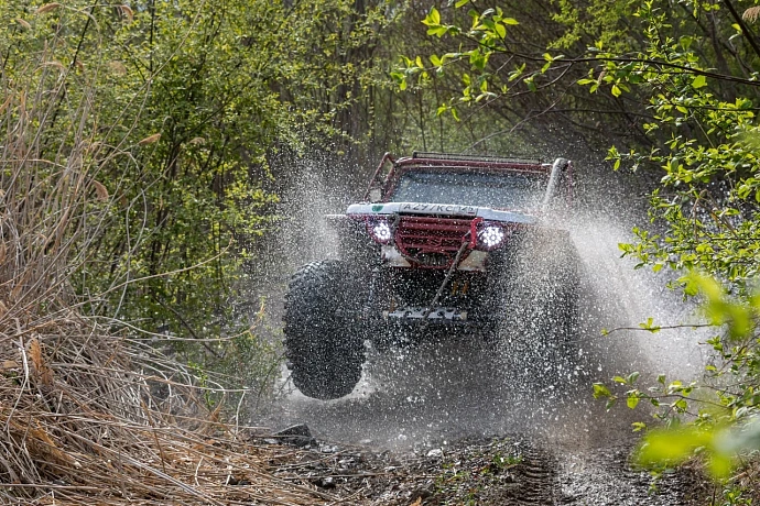 The forest, mud, and water obstacles are a serious test of strength not only for pilots, but also for equipment!